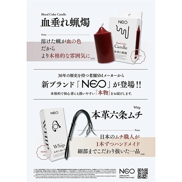本革を使用した高級感漂う本格的な六条ムチ日本のムチ職人が一本ずつハンドメイドしているため細部までこだわり抜いた一品扱いやすい重さで腕の負担になりにくい30年の歴史を持つ老舗SMメーカーから新ブランド「NEO」が登場!本格的で初心者にも扱いやすい「本物」をお届けします。