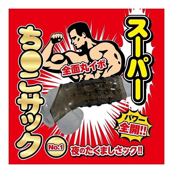 夜もがんばリング、で大人気のやわらかメンズリング「ち●こリング」シリーズに、スーパーなサックが新登場!今度のち●こサックは「ベースに装着するメンズサック」!ぷにぷにっとした柔らかなTPE(エラストマー)素材は、ぐい〜んとよく伸びる高伸縮性!サイズ問わずでどんな大きさでもしっかりフィットの抜群の装着感&締付感!さらに、ツンツンとしたトゲトゲ突起による高刺激快感が!男らしさを引き立たせるスモークカラー!「No.1」は、刺激高めにぐるっと配置された全面丸イボ突起!規則的に並んだ大小丸イボがアナタをスーパーに変身させるはず!ほとばしるストロング、みなぎるパワー!