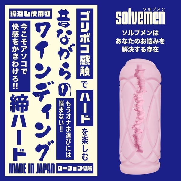 ソルブメンはあなたのお悩みを解決する存在です。「同じ構造でも素材が違えばそこは別世界」「ゴリゴリ刺激的にこすりたい」同じものを使い続けたいときもあれば、1日おきに違うものを使いたいときもある。そんな気まぐれに全力で応えたいです。それがソルブメンの生まれた意味だと思いませんか?今回のテーマは「ゴリゴリ刺激」となります。今日は少し何かもやもやしてるなて〜時にこそ!今回のテーマの「ゴリゴリ刺激ハード」であたまスッキリ!!それは間違いないのです。あなたはオナホ選びに悩む必要はなくなります。あなたのためにソルブメンがいるのです。安心安全の日本製で繰り返し何度でも利用が可能です。