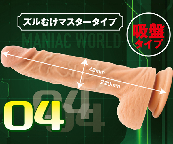 ズルムケした男根で興奮プレイ!本物を追求したマニアックワールドシリーズにマニアックワールドの新作ディルドが登場。柔らかな外皮&バキバキの筋肉感のある硬芯、2種類の素材を使用した男根を感じさせる超リアルな吸盤付ディルド。熟練されたような強いカリの返しと青筋浮き立つボディのマニアックワールドは生唾を飲み込むほど生々しく気持ちよさもひとしお♪壁や床へ固定できる吸盤付きの本格派ディルドです。