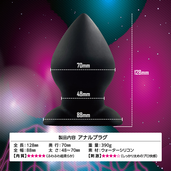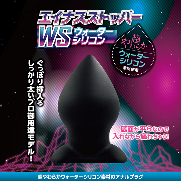 あのエイナスストッパーから、ビギナーからマニアまで楽しめるアナルストッパーが最新素材になって新登場!こちらの「エイナスストッパー WSウォーターシリコン (04)」は細めの先端から急激に太くなる桃型形状の太さが自慢の逸品。素材に使われているウォーターシリコンは通常のシリコンと比較してもマイルドな挿れ心地♪従来のノーマルシリコンだと痛みを感じる方や粘膜が弱めの方でもスムーズにお使いいただけます。握るとむにゅっと潰れる感触が優しく気持ちいい♪いつもよりワンサイズ上のプラグを入れて開発したいという用途にもぴったりです。サイズ感は太さ4.8〜7センチ!ボリュームたっぷりのしっかり太めで、プロフェショナルな快感を味わいたいときにぜひどうぞ。