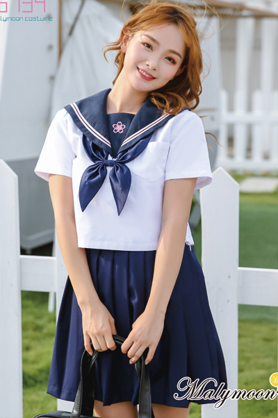 商品番号:wm0135 <malymoon>リボン付き・シンプルで可愛い紺セーラー服(半袖)